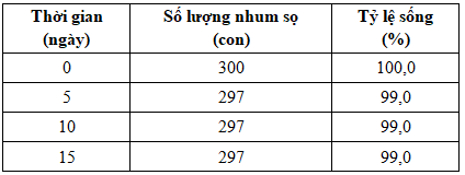 Bảng 2. Tỷ lệ sống của nhum sọ trong thời gian thuần dưỡng