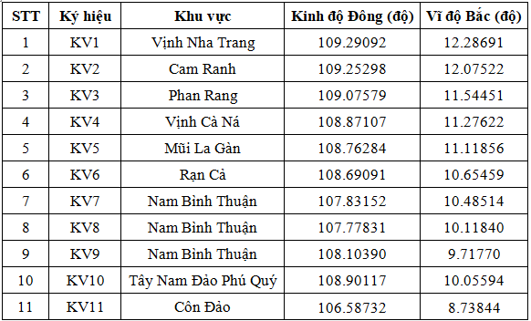 - Vị trí phát tán nguồn giống dọc vùng ven biển nghiên cứu được thể hiện trong Bảng 1.