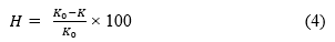 Trong đó: H là hiệu quả bảo vệ chống ăn mòn, %; K0 là tốc độ ăn mòn mẫu kim loại không có chất ức chế, g/(m2.h); K là tốc độ ăn mòn mẫu kim loại có chất ức chế, g/(m2.h).